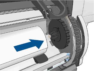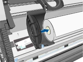 9. Вставьте правую часть рулона на правую втулку. Убедитесь, что рулон касается диска.