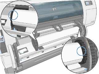 • Правый край рулона находится слишком далеко от синей линии. Убедитесь, что бумага правильно выровнена по правой втулке.