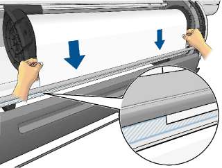 8. Вставьте рулон в выемку так, чтобы передний край бумаги был направлен вниз.
