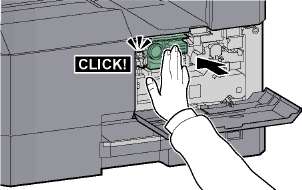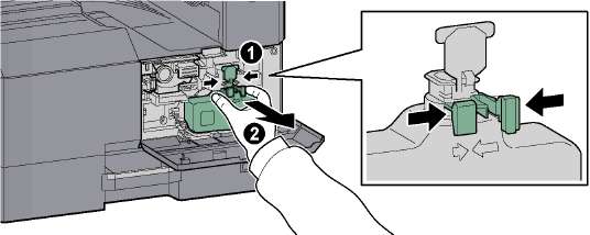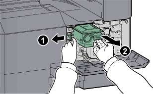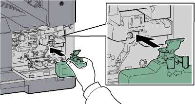 При замене контейнера заменяйте также бункер для отработанного тонера. Также необходимо заменить бункер для отработанного тонера, когда на дисплее сообщений отображается [Бункер отраб. тонера перепол. или не уст.].
