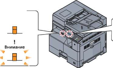 Если индикатор [Внимание] горит или мигает и на дисплее сообщений панели управления аппарата появилось сообщение об ошибке, проверьте KYOCERA Client Tool или Монитор состояния.