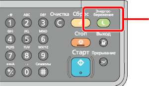 Нажмите клавишу [Энергосбережение]. Загорится индикатор [Энергосбережение].