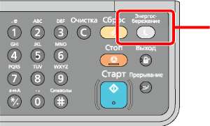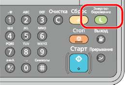 Для перехода в режим ожидания нажмите клавишу [Энергосбережение]. Все индикаторы на панели управления погаснут для экономии энергии, за исключением индикаторов [Энергосбережение]. Такое состояние называется режимом ожидания.