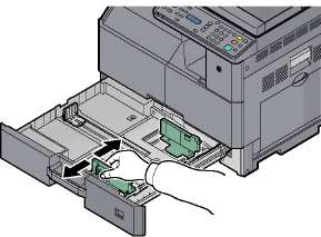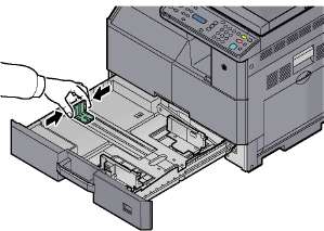2 Сожмите в нижней части края направляющей длины бумаги и отрегулируйте ее в соответствии с длиной бумаги.