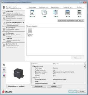 Содержит значки, которые можно использовать для простой настройки наиболее используемых функций. При любом нажатии на значок меняется изображение, напоминающее результаты печати, и применяются настройки.