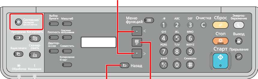 Для отображения параметров на дисплее сообщений нажмите клавишу [Состояние/Системное меню/ Счетчик]. Затем выберите один из отображенных параметров.