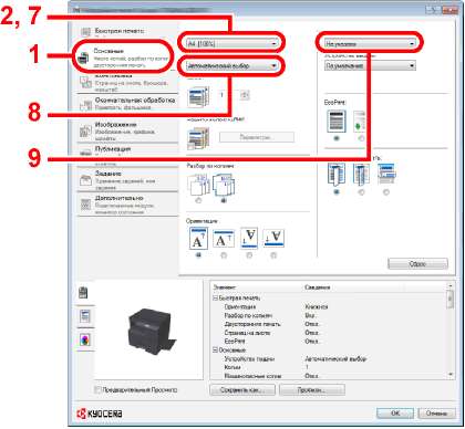 Изменение стандартных настроек драйвера принтера (Windows 7)