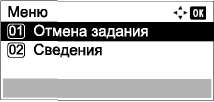 2 С помощью клавиш [вверх] и [вниз] выберите [Отмена задания] и нажмите клавишу [ОК].