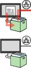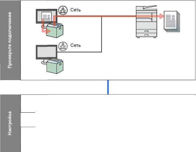 Если аппарат подключен к ПК в сети, можно использовать несколько ящиков печати на ПК, связанном с сетью.