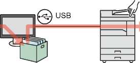 Поток операций ящика печати в случае подключения аппарата к ПК через USB