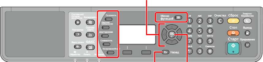 Часто используемые функции копирования можно зарегистрировать для клавиши выбора. Функции можно легко настраивать нажатием клавиши выбора.