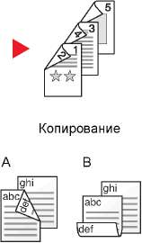 Данный режим позволяет снять двустороннюю копию с развернутого оригинала Требуется дополнительное устройство двусторонней печати.