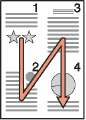 В Оригинал слева/справа — Сшивание сверху: изображения на оборотных сторонах переворачиваются на 180°. Оборотные страницы скопированного документа, скрепленного сверху, при перелистывании имеют правильную ориентацию.