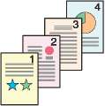 Объединение 2 или 4 листов оригинала на 1 печатной странице. Можно выбрать макет страницы и тип линий границы на странице.