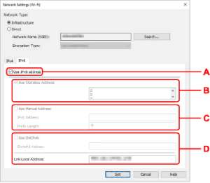 Следующие элементы настройки доступны, только если выбрано значение Инфраструктура (Infrastructure) для параметра Тип сети: (Network Type:).