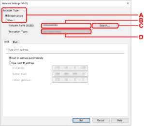 • Следующие элементы настройки доступны, только если выбрано значение Инфраструктура (Infrastructure) для параметра Тип сети: (Network Type:).