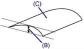 • В зависимости от типа бумага может пачкаться или неправильно подаваться, даже если она не скручивается внутрь. Следуйте приведенным ниже инструкциям, чтобы скруглить углы бумаги наружу на 3 мм / 0,1 дюйма (B) в высоту. Это может улучшить результаты печати.