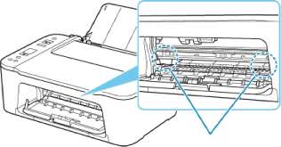 • Вся ли бумага извлечена из левой и правой пустых областей (В) в принтере?