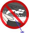Будьте осторожны при устранении препятствий для держателя печатающей головки и не дотрагивайтесь до белой ленты (А).
