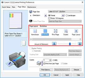 Если результат печати без полей вас не устраивает, уменьшите степень расширения. Степень расширения уменьшается по мере перемещения бегунка Степень расширения (Amount of Extension) влево.