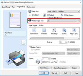 Выберите размер страницы в списке Размер стр. (Page Size) на вкладке Страница (Page Setup).