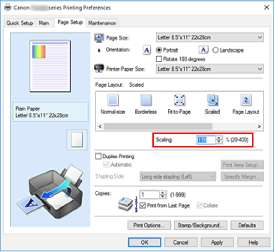 Если размер бумаги в принтере меньше значения параметра Размер стр. (Page Size), изображение страницы будет уменьшено. Если размер бумаги в принтере больше значения параметра Размер стр. (Page Size), изображение страницы будет увеличено.