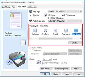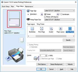 Выберите вариант Плитка/постер (Tiling/Poster) в списке Макет страницы (Page Layout) на вкладке Страница (Page Setup).