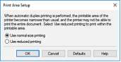 При выполнении двухсторонней печати область печати документа становится несколько меньше, чем обычно, и документ может не уместиться на одной странице. Щелкните Настройка области печати... (Print Area Setup...), выберите один из следующих методов обработки, а затем нажмите кнопку OK.