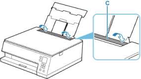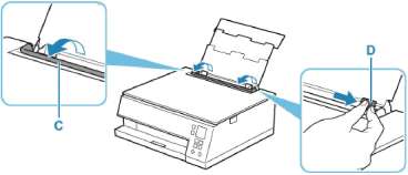 3. Сдвиньте переднюю (C) и правую (D) направляющие бумаги, чтобы открыть направляющие.