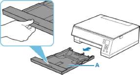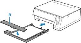 6. Установите крышку кассеты (B) и вставьте кассету в принтер.