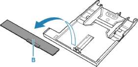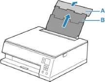 1. Откройте крышку заднего лотка (A). Вытяните прямо вверх и сложите назад упор для бумаги (B).