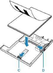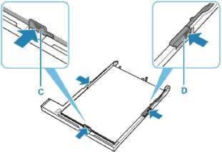 5. Выровняйте переднюю (C) и правую (D) направляющие бумаги по длине и ширине бумаги.