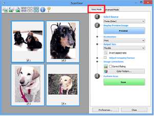 Используйте вкладку Основной режим (Basic Mode) для удобного сканирования в три простых этапа, отображаемых на экране.