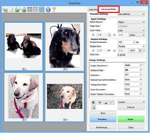 Используйте вкладку Расш. режим (Advanced Mode) для сканирования с указанием режима цветности, разрешения вывода, яркости изображения, цветового тона и других параметров.