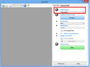 2. Установите для параметра Выбор источника (Select Source) значение, соответствующее используемому документу.