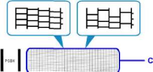 1. Проверьте образец С на наличие недостающих линий или образец D на наличие горизонтальных белых полос.