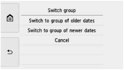 • Если на карте памяти сохранено больше 2000 фотографий, они автоматически делятся на группы по 2000 фотографий в обратном хронологическом порядке (дата последних изменений). Проверьте сообщение, отображаемое на сенсорном экране, затем выберите OK.