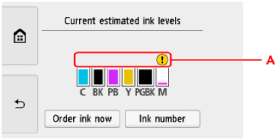 • Выберите Номер чернил (Ink number), чтобы отобразить экран Номер чернил (Ink number) для проверки номеров чернил.