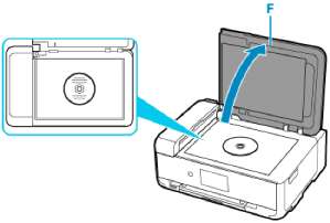 6. Откройте крышку сканера (F).