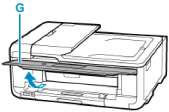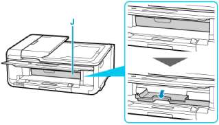 13. Откройте направляющую многофункционального лотка (J) и полностью доведите ее вниз.