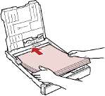 При загрузке листа для наклеек кладите его лицевой стороной вниз (как показано справа). Не используйте подложку для загрузки, прилагаемую к бумаге Photo Stickers.