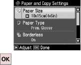 Убедитесь, что настроены параметры Размер бумаги и Тип бумаги.