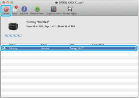 Щелкните кнопку Delete (Удалить), чтобы отменить задание печати.