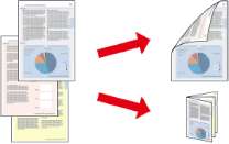 Доступно четыре типа двусторонней печати: автоматическая стандартная, автоматическая печать буклетов, стандартная печать вручную и печать буклетов вручную.