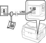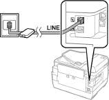 Подключите телефонный кабель от DSL-модема, терминального адаптера или ISDN-маршрутизатора к порту LINE на задней стороне устройства. Дополнительные сведения можно получить в документации, которая поставляется вместе с модемом, адаптером или маршрутизатором.