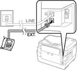 При совместном использовании на отдельной телефонной линии телефона и устройства телефон следует подключить к порту устройства EXT. В противном случае телефон и устройство могут не работать надлежащим образом.