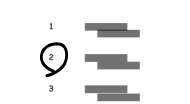 Если отсутствует любой сегмент напечатанных линий, как показано ниже, это может быть связано с забитыми дюзами или с разъюстировкой печатающей головки.