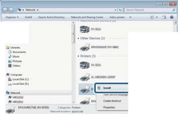 7. Убедитесь, что в сети отображается значок с именем принтера. Выберите имя принтера при использовании WSD.