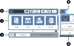 Указывает элементы, которые были настроены для принтера в качестве значков. Выберите каждый значок, чтобы проверить текущие настройки или получить доступ к каждому меню настроек.