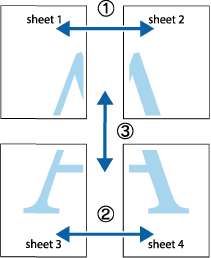 1. Подготовьте Sheet 1 и Sheet 2. Отрежьте поля Sheet 1 по синей вертикальной линии, проходящей через центр верхней и нижней метки пересечения.